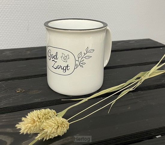- Mok met opdruk: God zorgt