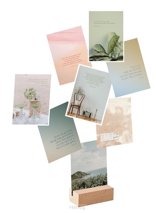 - Smaakvol vormgegeven kaarten met Bijbelteksten in de Statenvertaling die in ieder interieur passen. Door het handige houdertje kun je ze overal neerzetten.